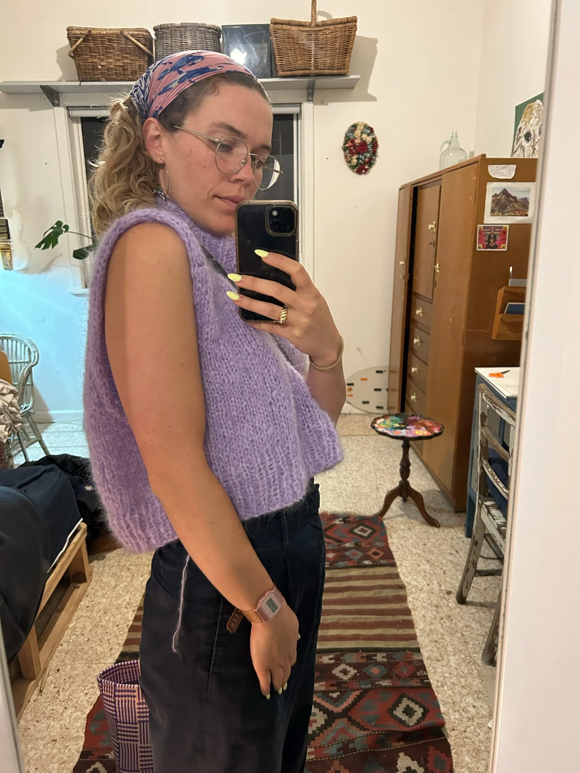 I knitted this in April/May 2024 just in time for the Melbourne winter to start, to keep you toasty and warm. It has a great cropped style, so you’ll have fun putting it together in different ways - as a vest, as a top, as a hot water bottle cover…who knows!